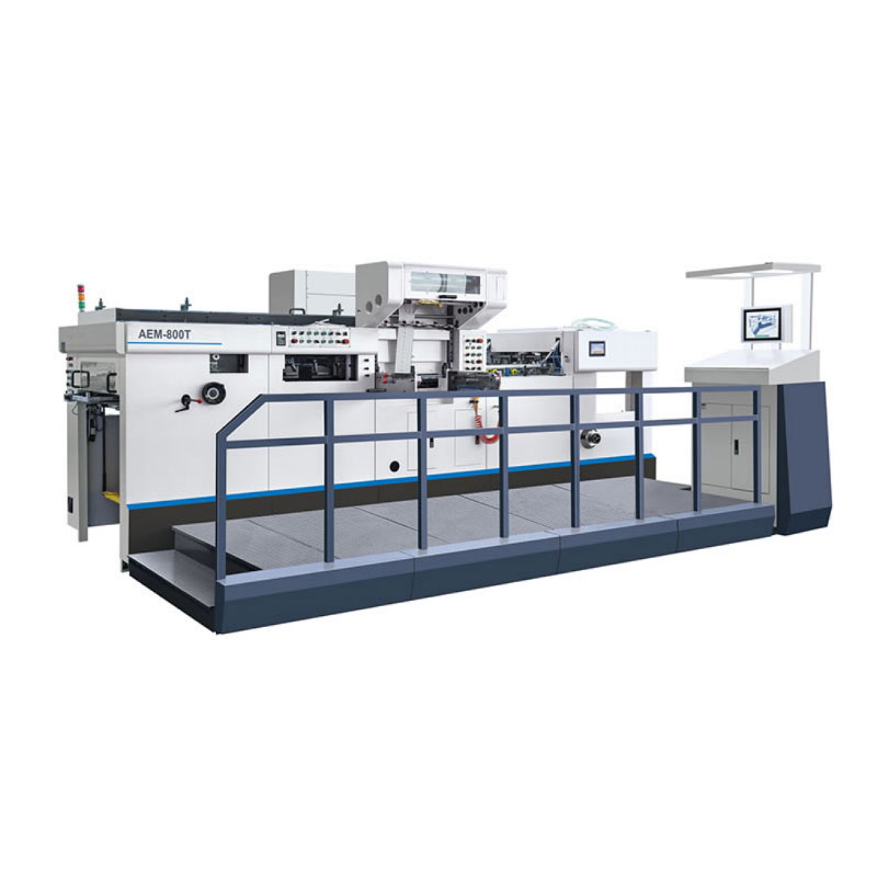 AEM-800T Automaattista kuumaa leimaamista ja suulakkeen leikkauskonetta käytetään kuuman leimaamiseen ja erilaisten papereiden, aaltolevyjen, muovilevyjen (kuten PVC: n, PP: n), suulakkeiden leikkaamiseen ja folion kuuma leimaamisen, holografisen kuuman leimaamisen, leikkauksen, rypistymisen ja kohokuvion toimintojen kanssa. Se omaksuu palvelinmoottorin kuuman leimaamisen, ruokinnan ja keräämisen hallitsemiseksi. Lämpötilanhallintajärjestelmässä on 12 lämmitysvyöhykettä, yksilöllinen lämpötilan asetus, vakio lämpötilan hallinta.
