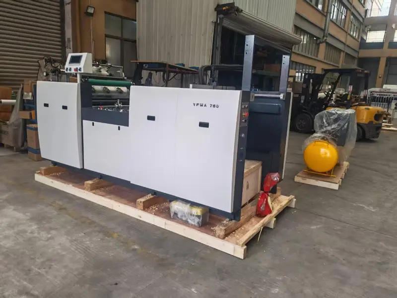 Pakkaamme YFMA-760:nAutomaattinen esipinnoituslaminointikone, Lopuksi se pakataan puiseen laatikkoon.